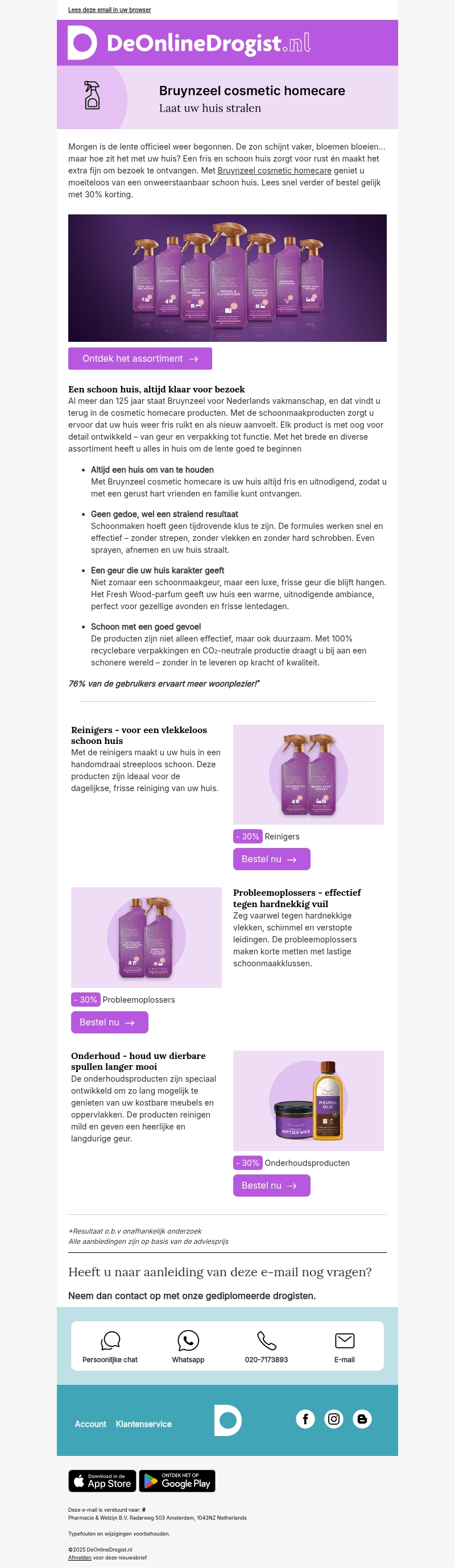 Begin de lente met een fris huis dankzij Bruynzeel cosmetic homecare. Geniet van effectieve schoonmaakoplossingen en natuurlijke geuren die uw huis laten stralen. Bestel nu met 30% korting en ervaar het gemak van hoogwaardige producten.