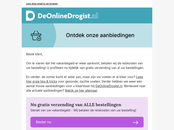 Door je in te schrijven voor de nieuwsbrieven of gebruik te maken van actuele kortingscodes, haal je vaak extra voordeel bij De Online Drogist. Op deze pagina zie je al het actuele aanbod en acties zonder dat je jezelf op meerdere plekken hoeft aan te melden.