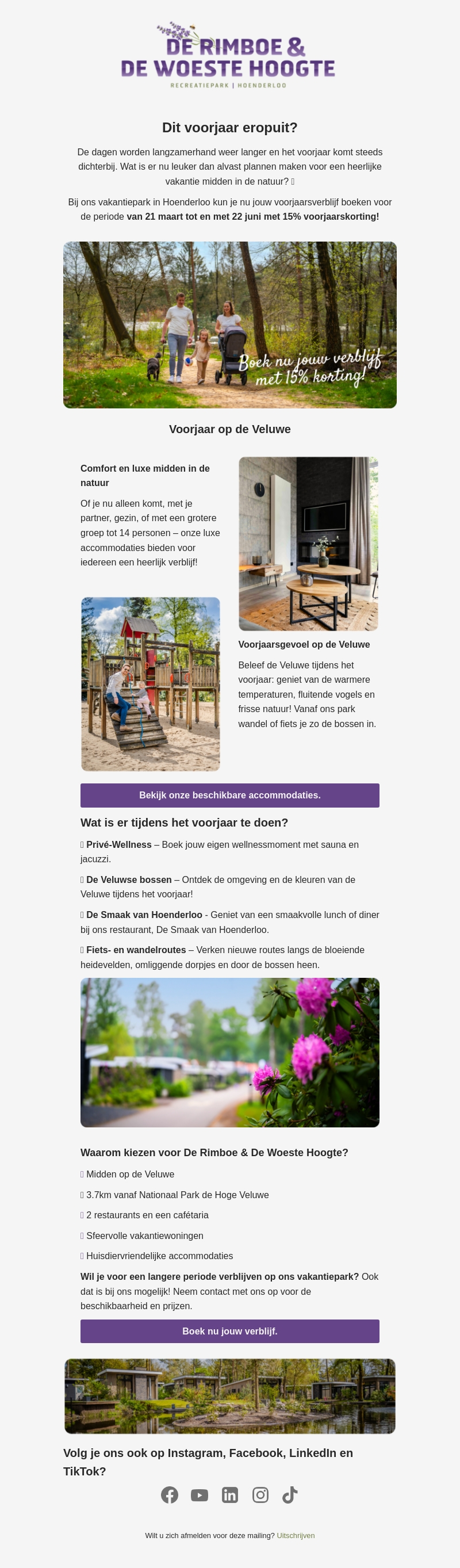 Boek nu jouw verblijf tijdens het voorjaar met 15% korting! ☀️