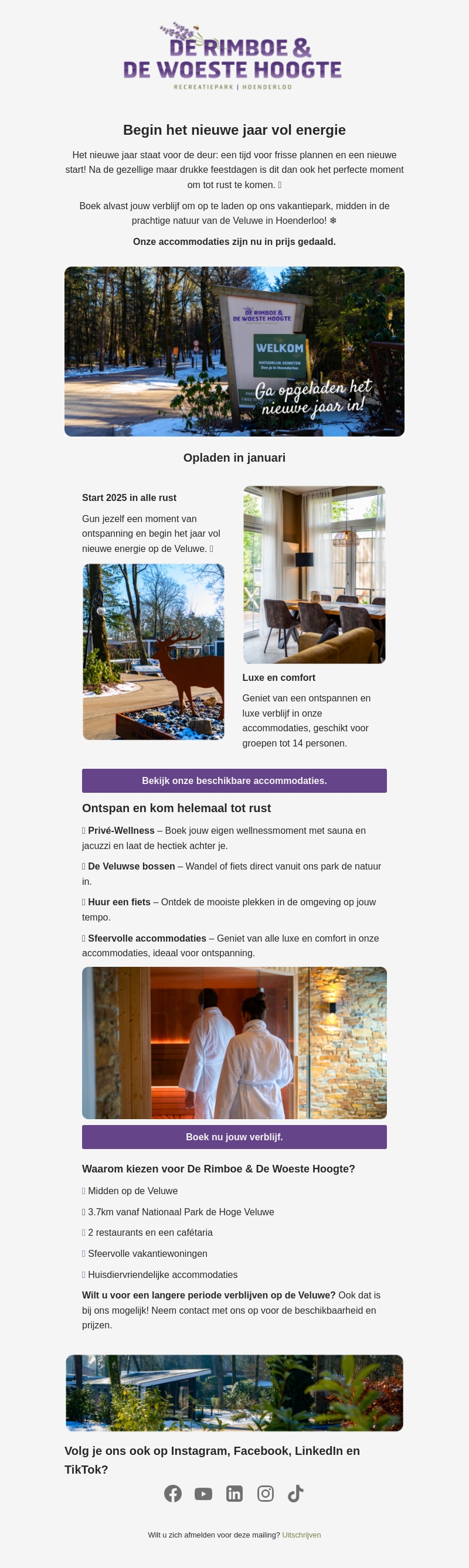 Start het nieuwe jaar fris en opgeladen bij De Rimboe & De Woeste Hoogte. Ontdek de luxe van onze accommodaties en geniet van de prachtige natuur van de Veluwe. Boek nu je verblijf en ervaar rust en comfort met onze privΓ©-wellness en sfeervolle ruimtes.