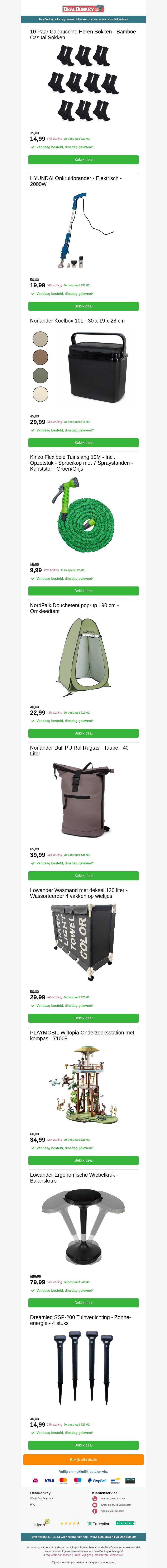 Geniet van de beste deals op een paar cappuccino heren sokken, een tuinslang en nog veel meer. Perfect voor je thuis en tuin. Mis het niet!