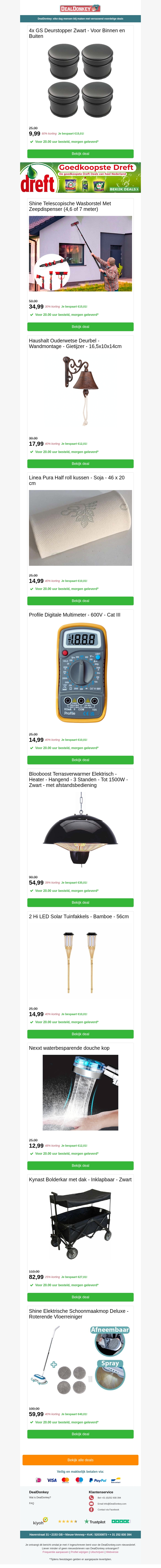 4 Deurstoppers - Ouderwetse Deurbel - Terrasverwarmer - Tuinfakkels - Bolderkar