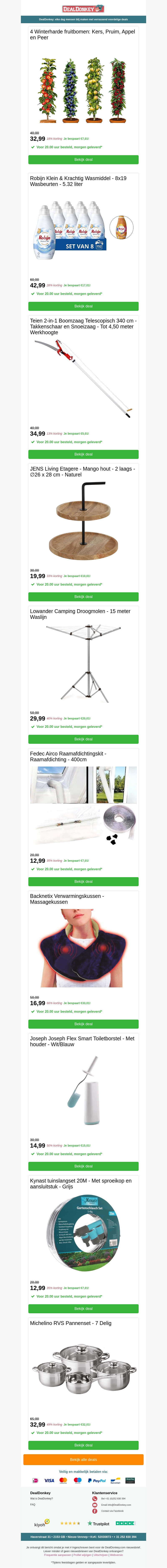 4 Fruitbomen - Boomzaag - Etagere - Camping Droogmolen - Toiletborstel - Tuinslangset