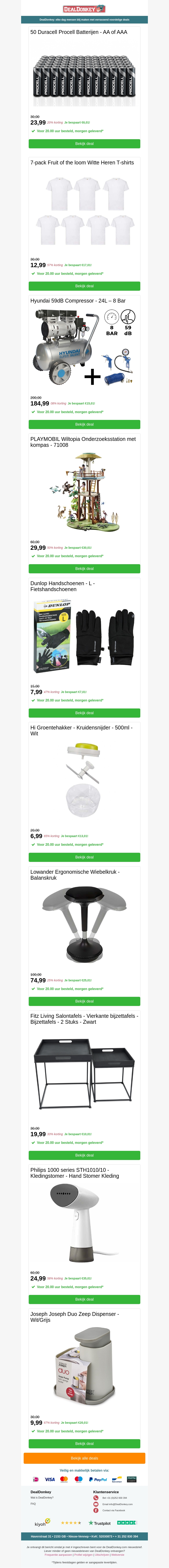 Profiteer nu van geweldige kortingen op Duracell Procell batterijen AA en AAA. Vind hoogwaardige tools zoals compressoren en stijlvolle meubels zoals salontafels. Ontdek ook handschoenen, kledingstomers en meer in deze exclusieve nieuwsbrief.