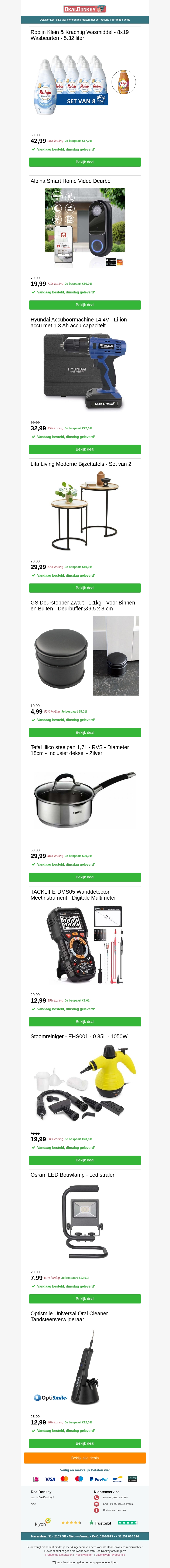 Mis deze geweldige aanbiedingen niet! Bespaar op een 8-pack Robijn wasmiddel, handige accuboormachines, stijlvolle bijzettafels en meer. Ideaal voor huishoudelijke upgrades en dagelijkse benodigdheden. Bekijk nu de nieuwste deals!