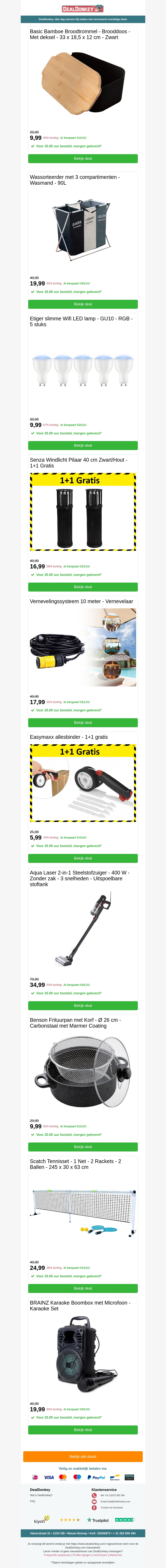 De nieuwste deals zijn hier! Ontdek de Basic Bamboo Broodtrommel, slimme wifi LED lampen, stijlvolle windlichten, krachtige steelstofzuiger, handige frituurpan en een complete tennisset. Profiteer van scherpe prijzen en exclusieve aanbiedingen. Shop vandaag nog!