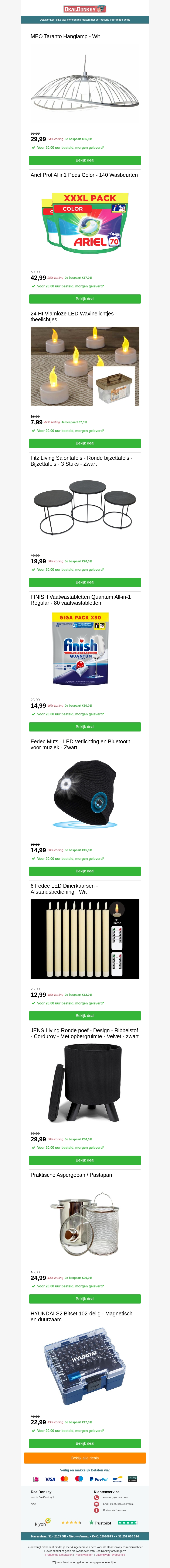 Blader door ons nieuwste aanbod van deals op een reeks huishoudartikelen, van wasmiddelen tot LED-kaarsen en praktische keukenaccessoires. Er zijn producten voor alle behoeften en budgetten. Mis niet de kans om te profiteren van exclusieve kortingen. Bekijk dit snel, de voorraad is beperkt!