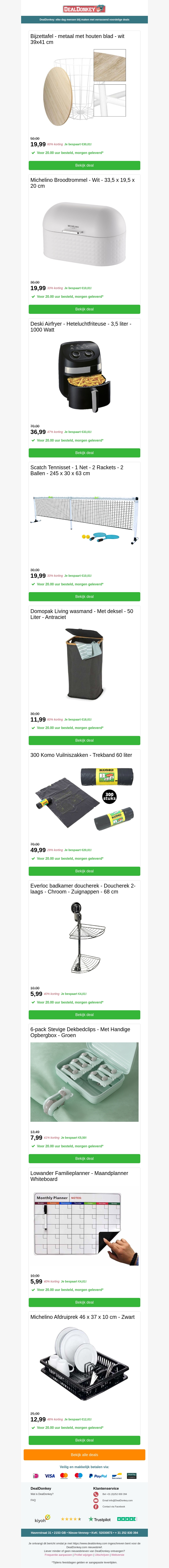 We hebben spannende nieuwe deals voor jou op een breed scala aan producten. Of je nu op zoek bent naar meubels, keukenapparatuur, of handige opbergoplossingen, we hebben iets voor iedereen. Profiteer van geweldige kortingen op items zoals bijzettafels, draadloze stofzuigers en meer. Mis deze kans niet om te sparen op hoogwaardige artikelen. Bezoek onze website voor meer informatie en de volledige selectie van aanbiedingen. Neem snel een kijkje voordat het te laat is.
