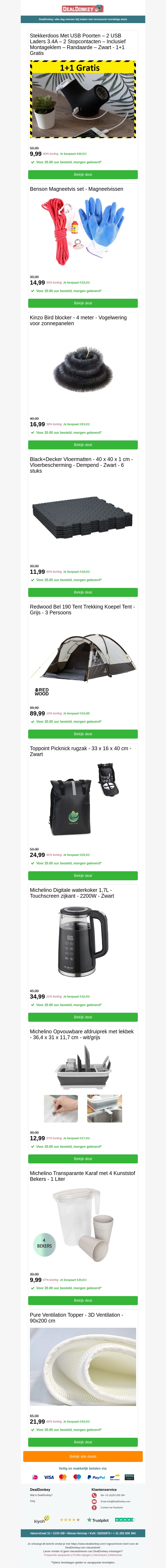 Ontdek de nieuwste deals op onze website! Van stroomadapters met USB-poorten tot magnetvissen sets, wij hebben alles wat je nodig hebt. Bovendien bieden we ook een ruime selectie van handige en praktische producten, zoals een picknick rugzak en een digitale waterkoker. Bekijk snel de aanbiedingen voordat ze verlopen!