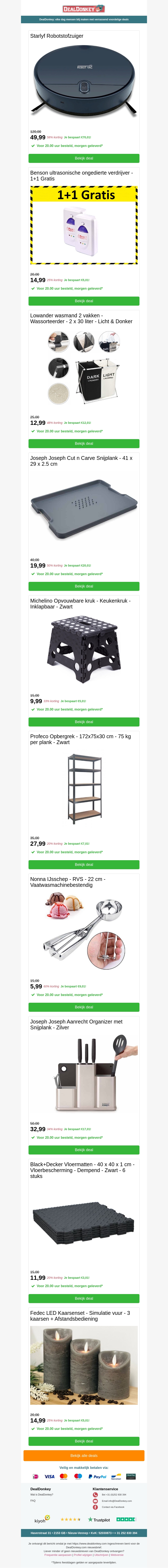 Bezoek onze nieuwsbrief en ontdek de laatste deals op huishoudelijke artikelen. Bespaar op populaire merken zoals Bosch en Joseph Joseph. Profiteer van de 1+1 gratis actie en meer. Mis deze unieke aanbiedingen niet en shop slim vandaag nog.
