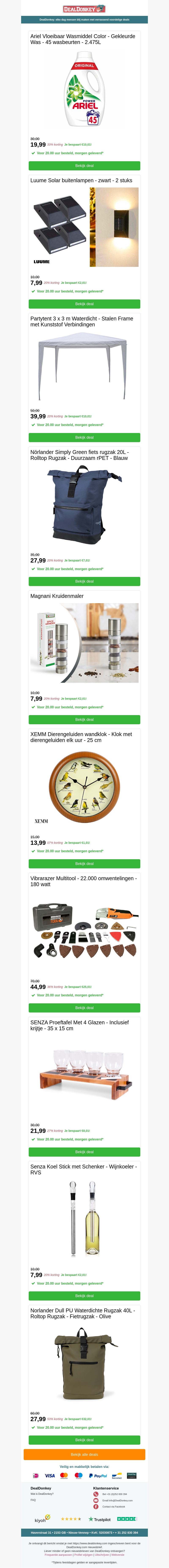 Welkom bij de nieuwste collectie deals op mailaanbiedingen.nl! In deze nieuwsbrief vind je geweldige kortingen op verschillende producten, van schoonmaakmiddelen tot stijlvolle meubelen. Mis je kans niet om te besparen op topmerken en populaire items. Bekijk de speciale aanbiedingen en grijp je kans!