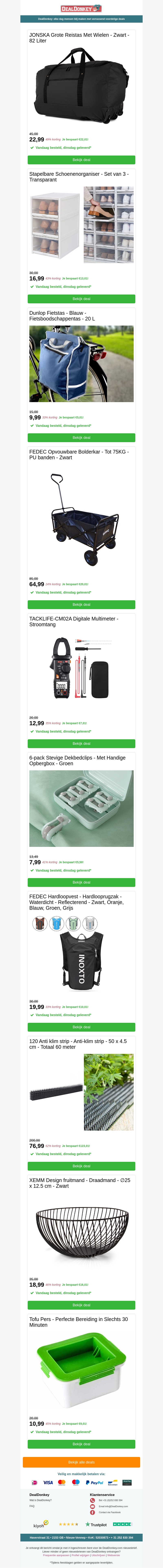 Ontdek 10 fantastische weekenddeals met producten voor diverse behoeften. Of je nu op zoek bent naar opbergruimte voor schoenen, praktische fietstassen, of handige opvouwbare wagens, je vindt het hier. Mis de speciale kortingen niet en geniet van de hoogwaardige aanbiedingen. Bekijk snel alle deals en profiteer van de tijdelijke prijsverlagingen.