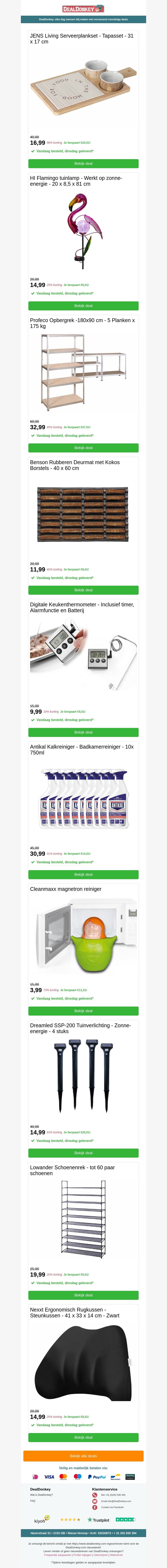 Bekijk onze selectie van 10 unieke weekenddeals. Van keukengadgets tot stijlvolle decoratie, er is voor ieder wat wils. Mis dit niet en bespaar nog meer met onze exclusieve kortingen. Neem snel een kijkje en maak gebruik van deze tijdelijke aanbiedingen.