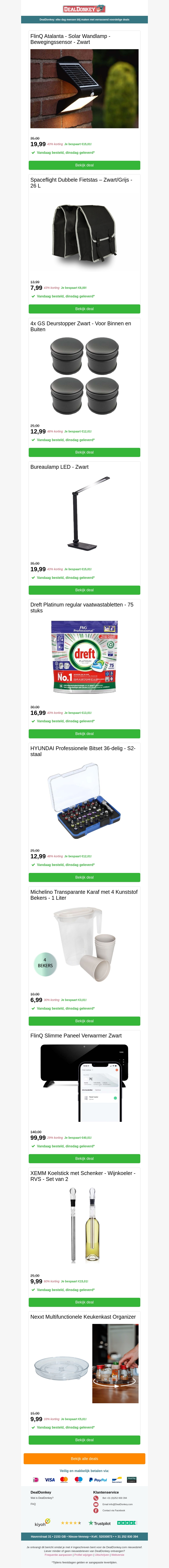 Verlies geen tijd en ontdek onze 10 extra voordelige weekenddeals. Van stijlvolle tuinlampen tot praktische keukenaccessoires, we hebben voor ieder wat wils. Deze aanbiedingen gelden alleen dit weekend, dus mis ze niet. Verwen jezelf of verras een geliefde met een voordelige aankoop. Wacht niet langer en profiteer nu. Veel plezier met winkelen!