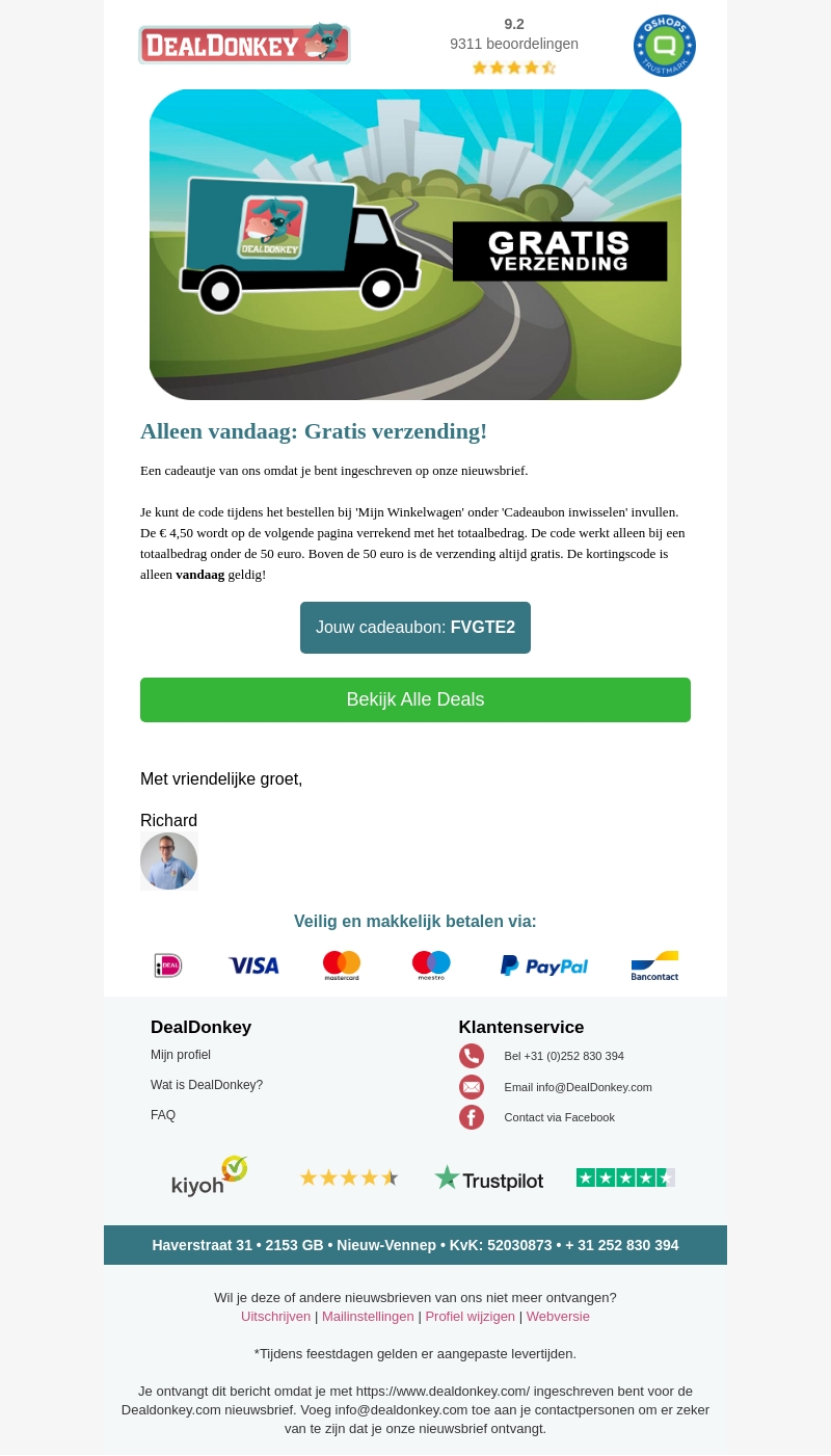 Beste -> We hebben een kortingscode voor gratis verzending voor jou