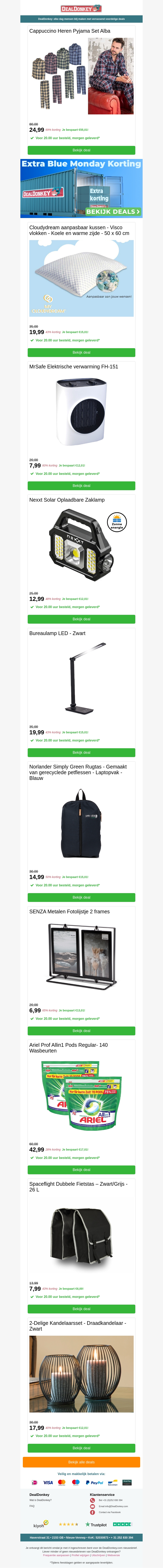 Ontdek onze geweldige aanbiedingen waaronder Cappuccino Heren Pyjama's, efficiënte verwarmingsopties, en handige bureaulampen. Bespaar extra op stijlvolle en comfortabele lichtere kleding met onze deals. Mis deze kans niet om te profiteren van de allerbeste kortingen op uw favoriete producten.