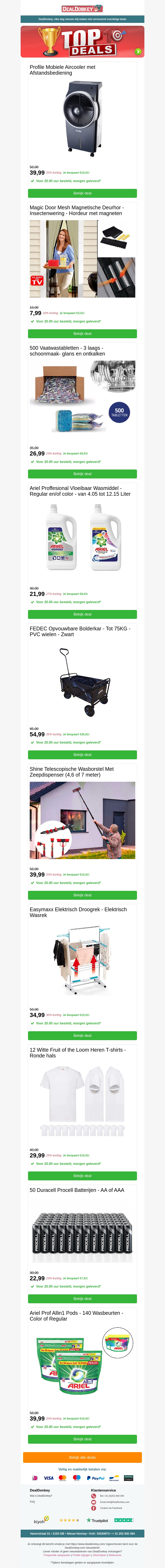 Ontdek de top 10 deals van vandaag! Van mobiele aircoolers tot elektrische droogrekken, deze nieuwsbrief biedt de beste aanbiedingen om te besparen. Bekijk onze selectie en pak je voordeel met kortingen op populaire producten. Mis deze kans niet om geld te besparen op kwaliteitsproducten!
