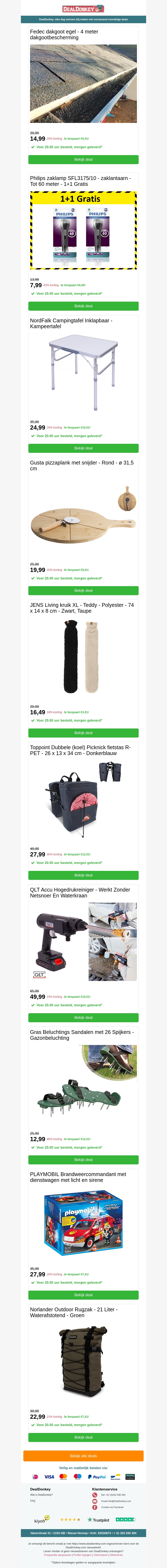 Ontdek de nieuwste aanbiedingen in onze nieuwsbrief. Van Fedec Dakgoot Egel en handige campingtafel tot een comfortabele kruik en een praktische picknick fietstas. Mis ook de Philips scheerkoppen en krachtige Accu Hogedrukreiniger niet. Shop nu voor de beste deals!
