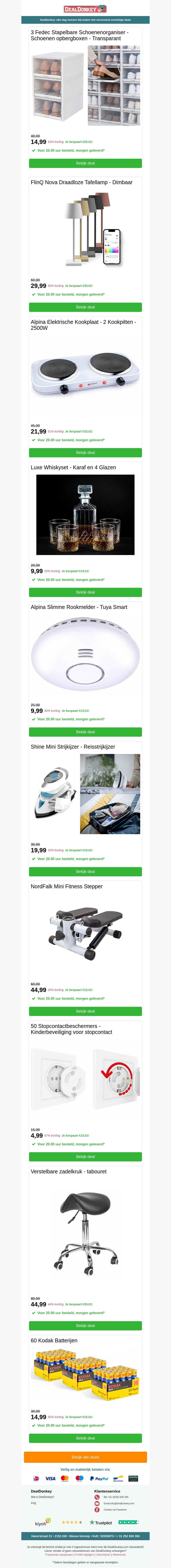 Ben je op zoek naar handige oplossingen voor je huis? Bekijk onze topaanbiedingen zoals de Fedec Schoenenorganiser, Elektrische Kookplaat, Rookmelder, Fitness Stepper en Zadelkruk. Laat je inspireren door stijlvolle en functionele producten die je dagelijks leven makkelijker maken. Mis deze geweldige deals niet en doe je voordeel met de beste prijzen!