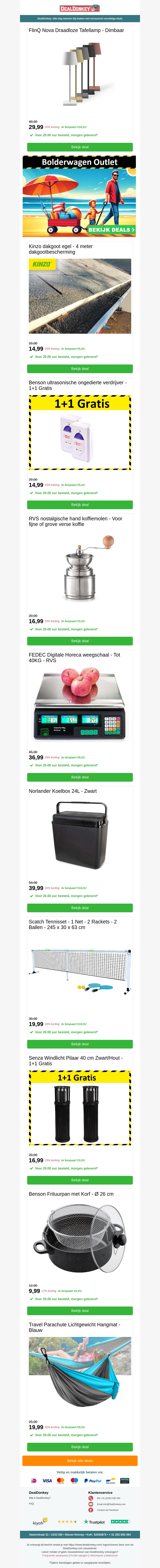Profiteer van onze nieuwste aanbiedingen, waaronder de FlinQ Nova Draadloze Tafellamp met dimfunctie, een praktische horeca weegschaal en een handige koelbox. Mis ook de 1+1 gratis deals op diverse producten. Bekijk alle details en bespaar nu!