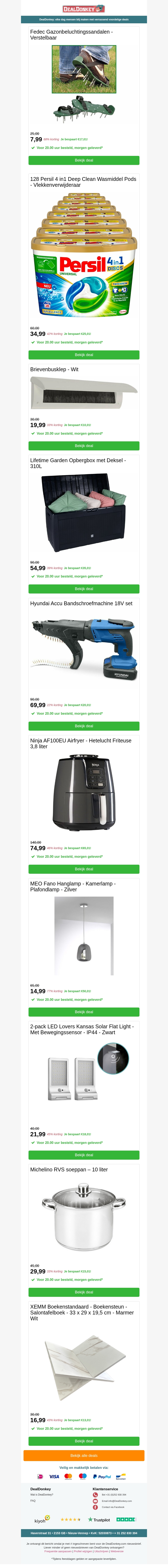 Gazonbeluchtingssandalen - Brievenbus - Opbergbox - Bandschroefmachine - Airfryer