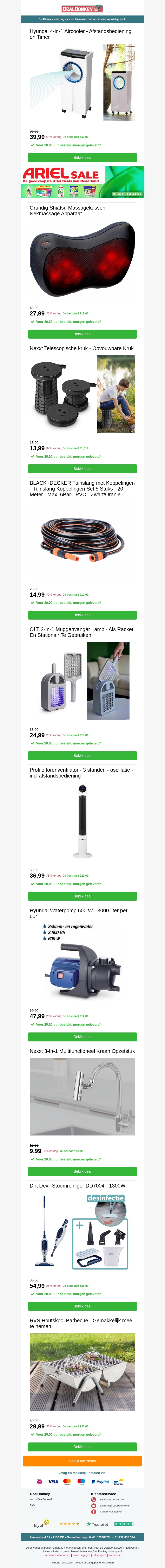 Hyundai 4-in-1 Aircooler - Nexxt Telescopische kruk - BLACK+DECKER Tuinslang - QLT 2-In-1 Muggenvanger Lamp