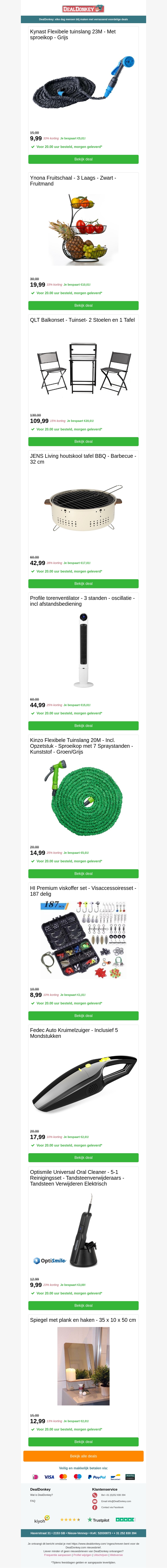Profiteer van onze nieuwste aanbiedingen! Beschikbare producten zijn onder andere de Kynast flexibele tuinslang, duurzame houtskool tafel BBQ's, efficiënte torenventilatoren, en uitgebreide viskoffers. Perfect voor tuinieren en outdoor activiteiten. Bekijk nu onze deals!
