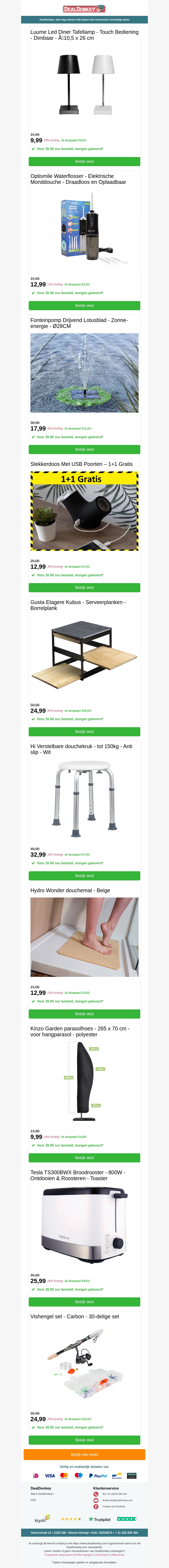 Bekijk onze nieuwste aanbiedingen met producten zoals de Luume Led Tafellamp, een fonteinpomp, serveerplanken, een douchekruk, een douchemat en een broodrooster. Profiteer van geweldige kortingen en geef je huis een upgrade. Mis deze unieke deals niet en shop nu!
