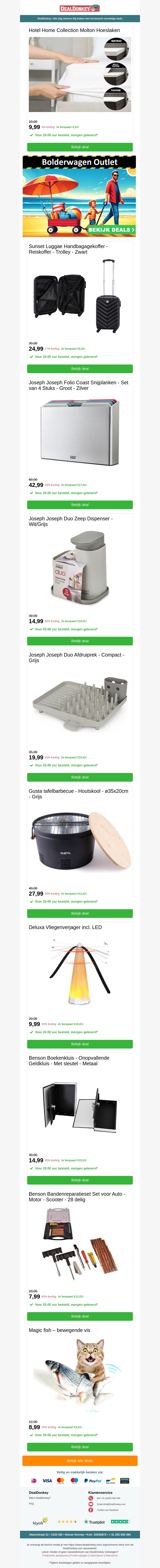 Bekijk de nieuwste aanbiedingen op diverse huishoudelijke producten zoals Hotel Home Collection Molton Hoeslakens, Sunset Luggage Handbagagekoffer, Joseph Joseph Duo Zeep Dispenser, en nog veel meer. Profiteer nu van scherpe prijzen en hoge kwaliteit.