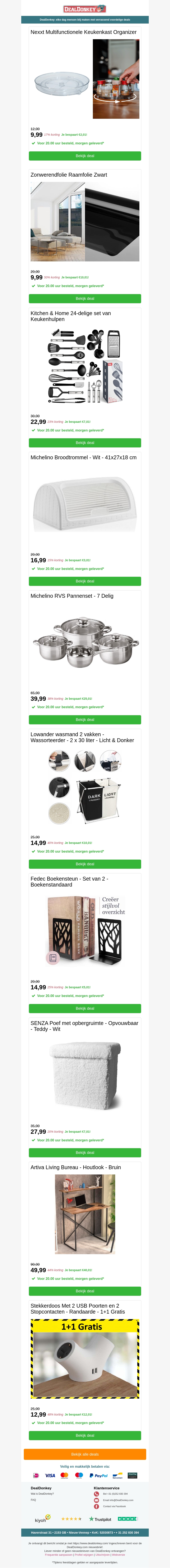 Deze nieuwsbrief bevat de veelzijdige Nexxt Keukenkast Organizer en andere handige keukenaccessoires zoals een broodtrommel, wasmand, poef en bureau. Perfect voor een georganiseerde en stijlvolle keuken.