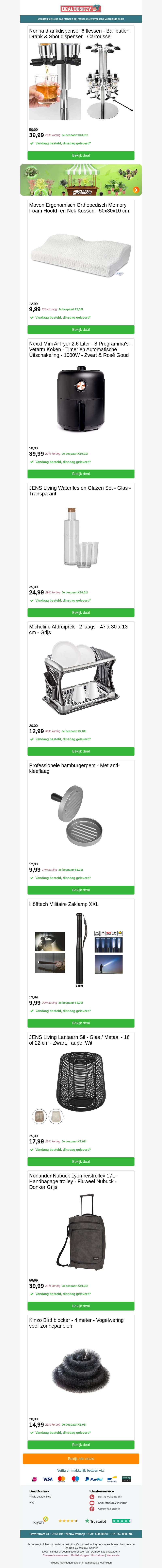 In deze nieuwsbrief presenteren we spannende aanbiedingen zoals de stijlvolle Nonna Drankcarrousel. Daarnaast bieden we praktische items zoals een waterfles met glazen, een multifunctioneel lantaarn, en een handig hardloopvest aan. Mis deze exclusieve kortingen niet en upgrade je huis en outdoor activiteiten.