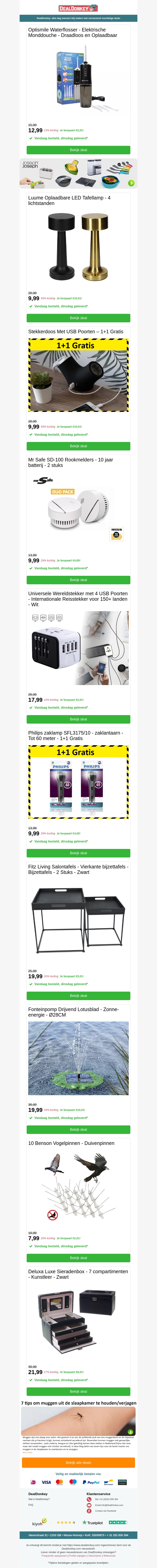 Optismile Waterflosser - Stekkerdoos 1+1 Gratis - Mr Safe SD-100 Rookmelders - Salontafel - Vogelpinnen