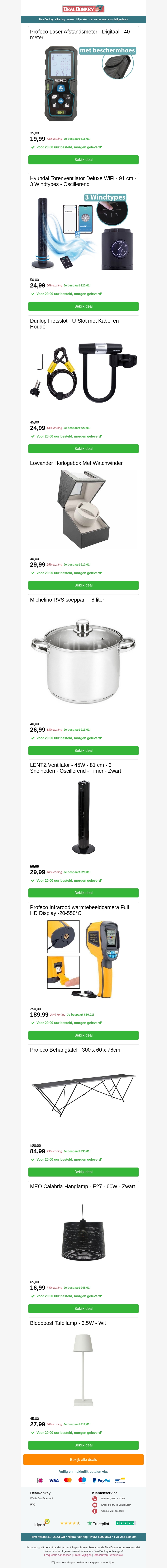 Profeco Laser Afstandsmeter - Fietsslot - Horlogebox - Soeppan - Ventilator - Behangtafel