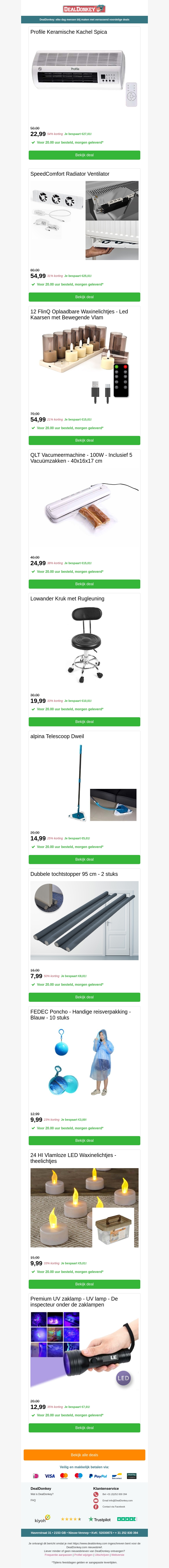 Ontdek onze nieuwste deals op praktische huishoudelijke artikelen. Van keramische kachels tot oplaadbare waxinelichtjes en handige vacumeermachines, er is iets voor iedereen. Voeg comfort toe aan je huis met een kruk met rugleuning en meer.