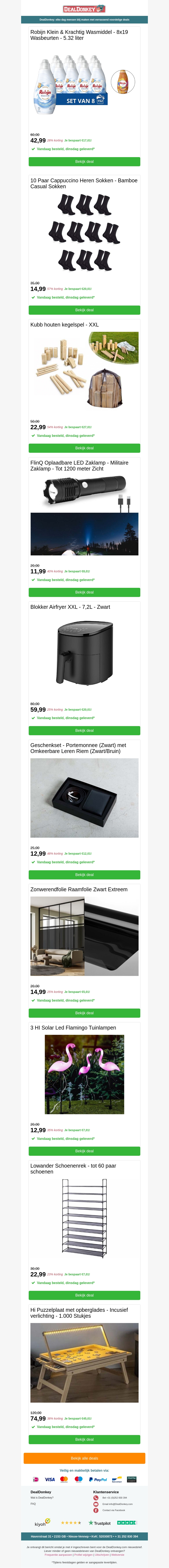 Ontdek de laatste aanbiedingen met Robijn wasmiddel sets, een krachtige LED zaklamp, en innovatieve Airfryers. Voor de huishoudelijke organisator, bieden wij ook een veelzijdig schoenenrek en een puzzelplaat met opberglades. Shop nu met interessante kortingen en maak uw leven gemakkelijker!