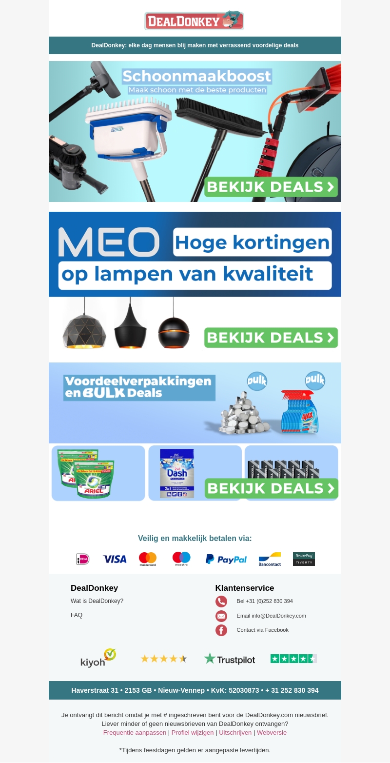 Verhoog uw schoonmaakroutine met geweldige aanbiedingen op schoonmaakproducten. Profiteer van hoge kortingen op MEO verlichting en voeg stijl toe aan uw interieur. Ontdek tevens onze voordeelverpakkingen voor economische huishoudkeuzes. Mis deze kans niet op fantastische deals bij DealDonkey.