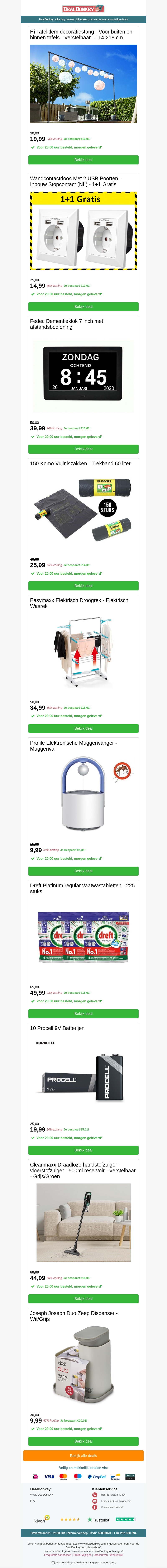Tafelstang - 150 komo vuilniszakken - Elektrisch Droogrek - Muggenvanger - Dreft Vaatwastabletten