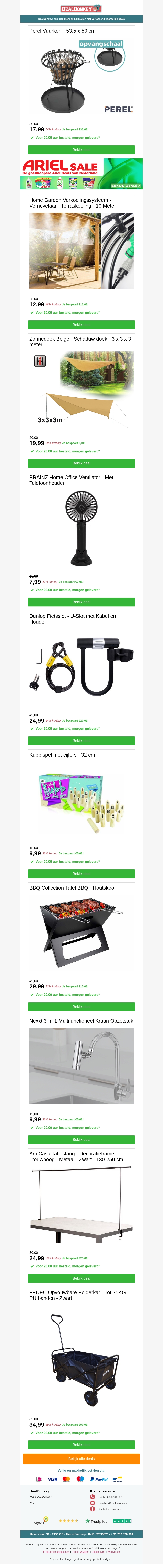 Vuurkorf - Schaduwdoek - Tafelventilator - Fietsslot - Kubb Spel