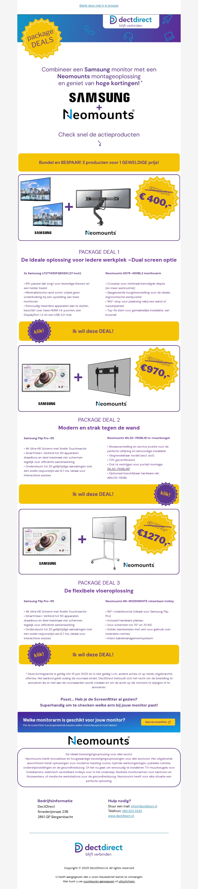 - DectDirect PACKAGE DEAL PACKAGE DEAL 1 – De ideale oplossing voor iedere werkplek – Dual screen optienu € 400 bij DectDirectkoop