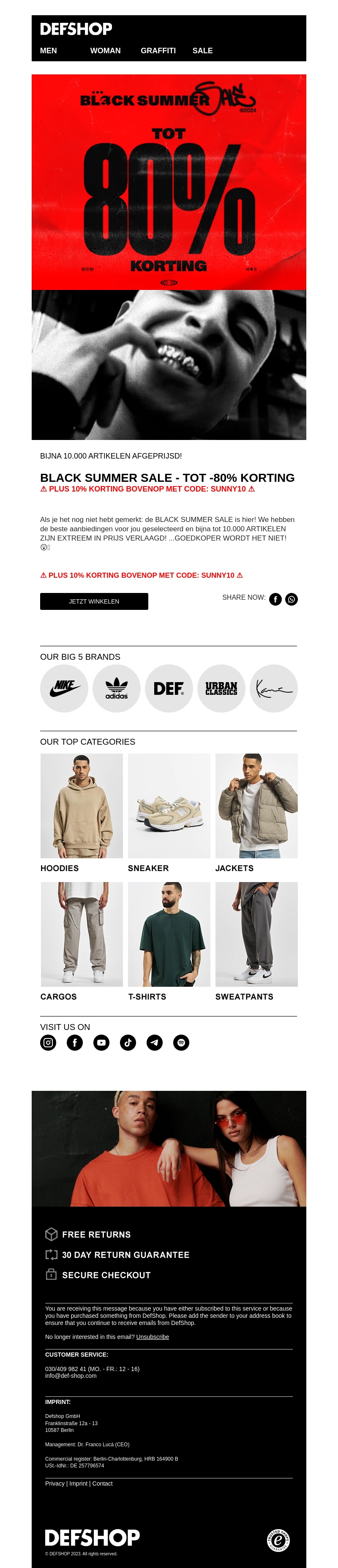 De BLACK SUMMER SALE is hier met kortingen tot -80% op bijna 10.000 artikelen. Plus, ontvang extra 10% korting met code SUNNY10. Mis deze megakortingen niet en shop nu jouw favoriete merken!