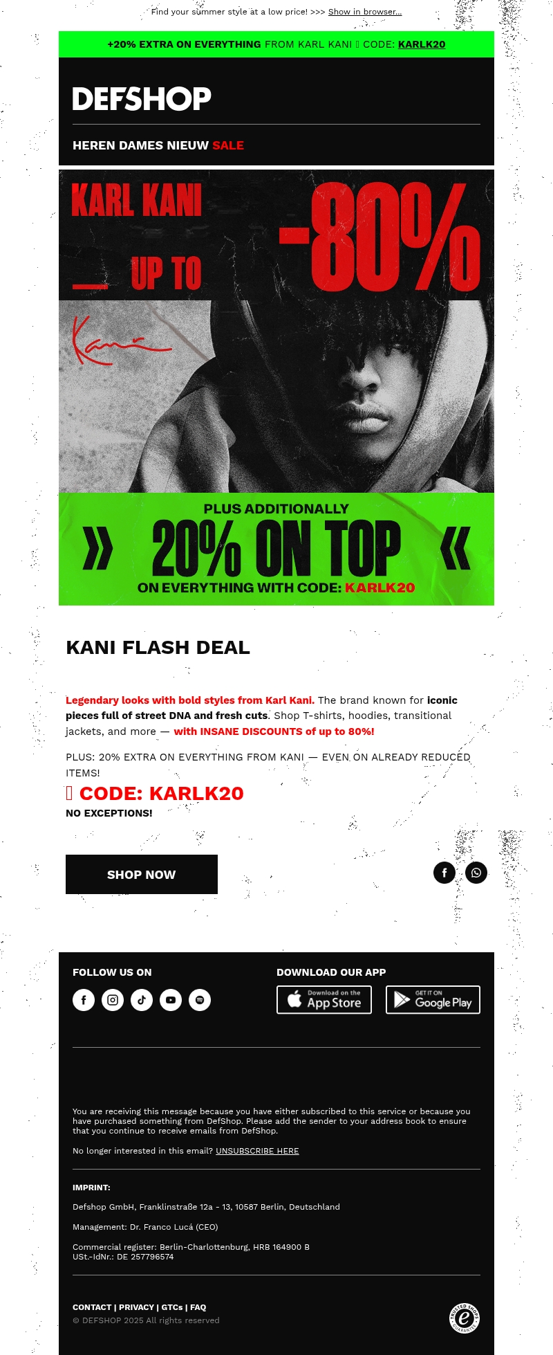 π₯ Plus 20% ON TOP π₯ on ALL Karl Kani items