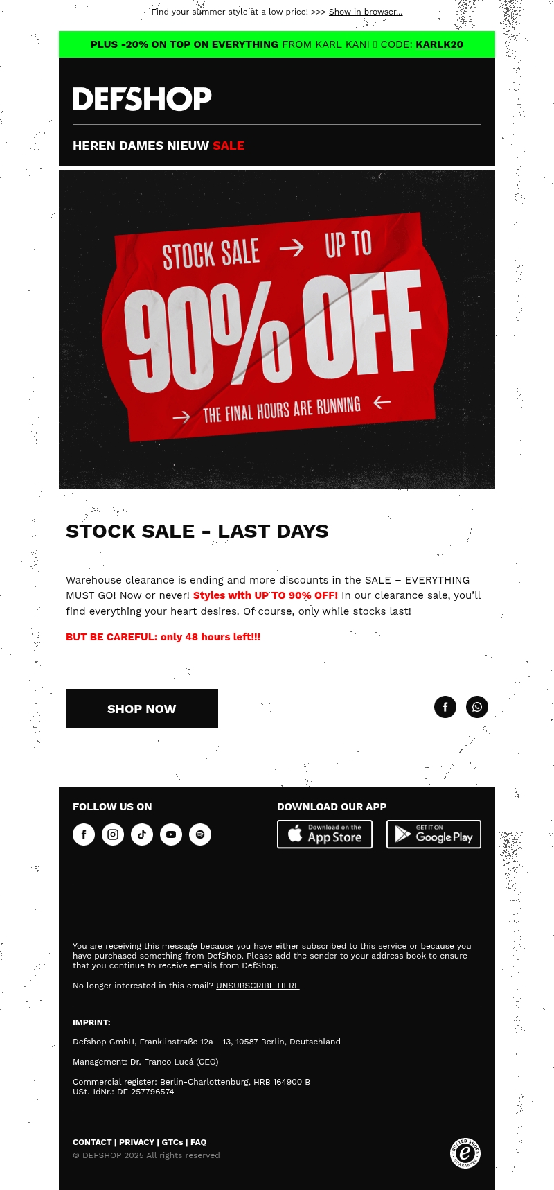 Pak deze kortingscode: KARLK20