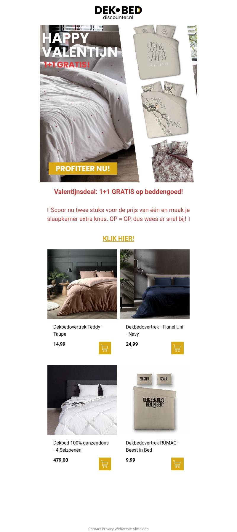Vier Valentijnsdag met een speciale aanbieding van Dekbed Discounter: koop één dekbedovertrek en krijg er één gratis. Maak je slaapkamer extra gezellig met onze stijlvolle opties. Wees er snel bij, OP=OP!