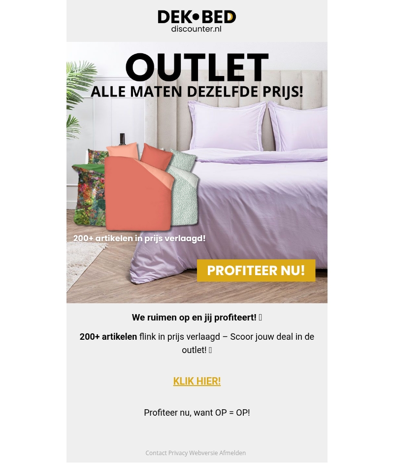 Ruim je huis op met onze geweldige outlet deals! Meer dan 200 artikelen zijn nu flink in prijs verlaagd. Profiteer van deze unieke kans om te besparen op kwaliteitsproducten. Mis je kans niet - op is op! Klik nu en scoor jouw deal in onze outlet.