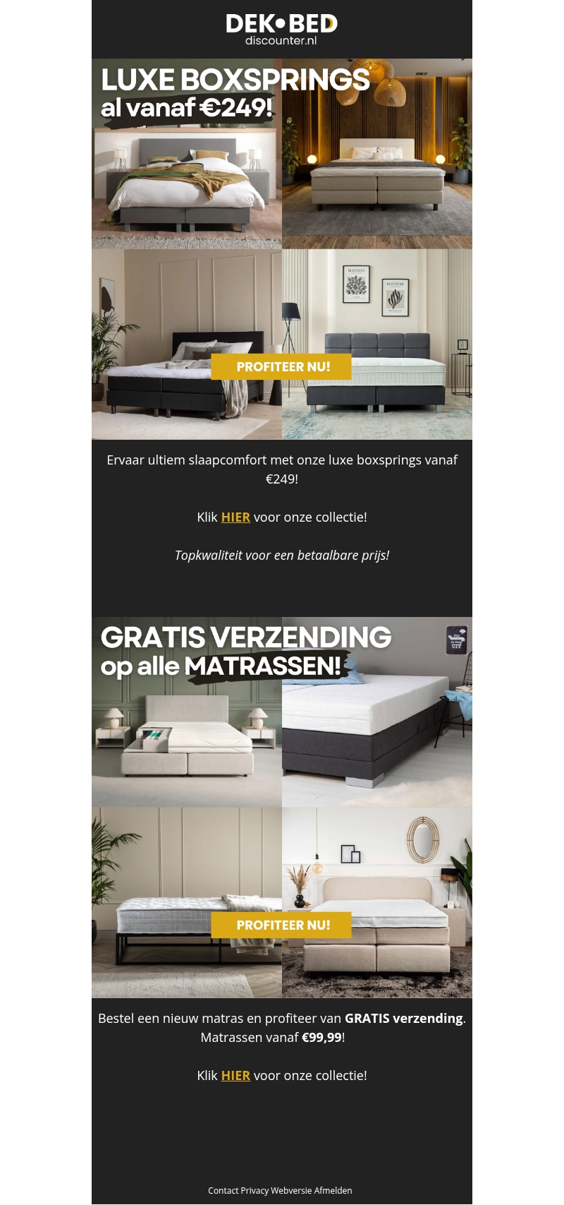 Ervaar ultiem slaapcomfort met onze luxe boxsprings vanaf slechts €249. Profiteer van gratis verzending op alle matrassen vanaf €99,99. Ontdek de perfecte combinatie van kwaliteit en betaalbaarheid. Mis deze kans niet om uw slaapervaring te verbeteren. Bezoek onze collectie nu voor een heerlijke nachtrust!