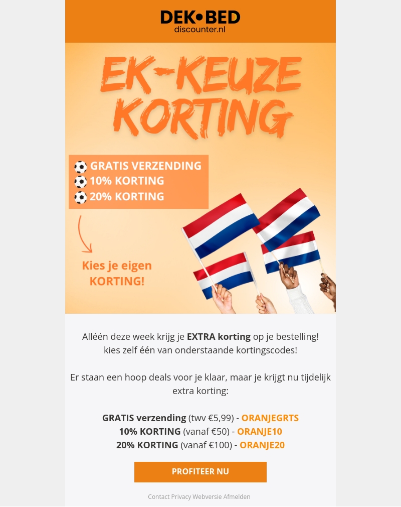 Alleen deze week biedt Dekbed Discounter je de kans om te profiteren van extra kortingen. Kies uit gratis verzending, 10% korting of 20% korting met onze exclusieve kortingscodes. Mis deze geweldige kans niet om te sparen op je volgende aankoop!