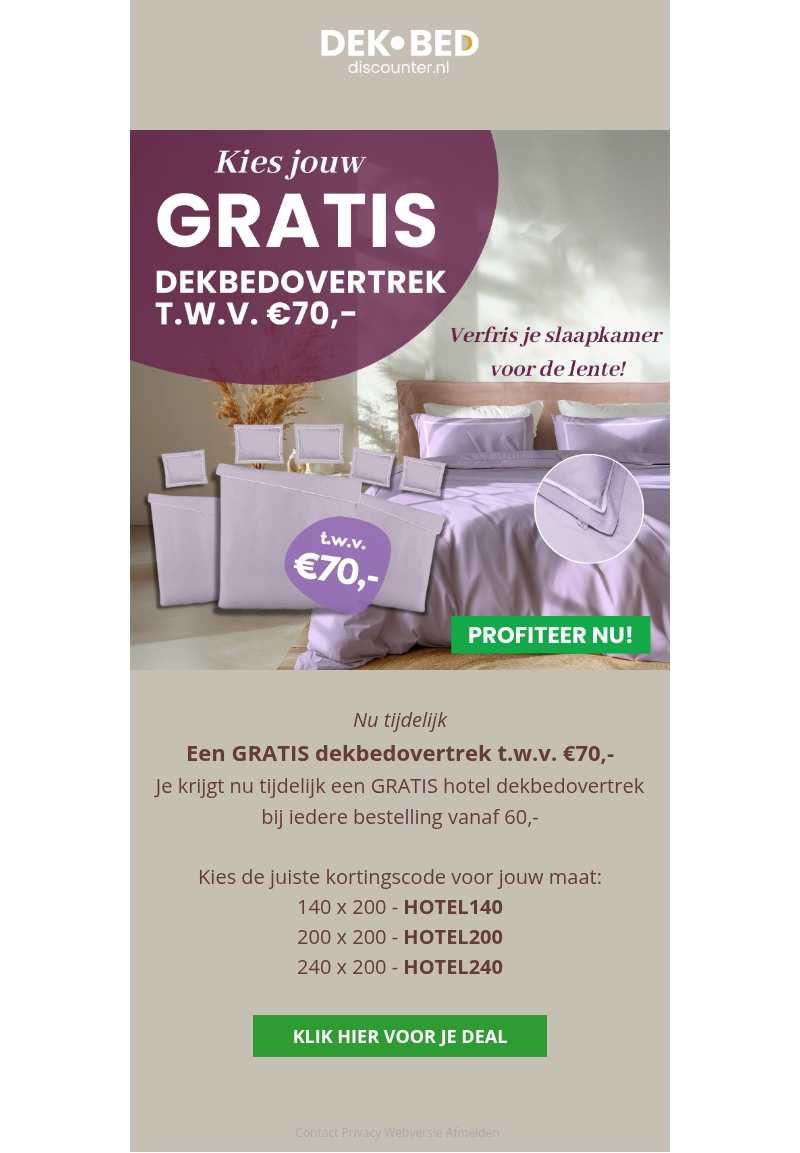 Een GRATIS dekbedovertrek t.w.v. β¬70,- π
