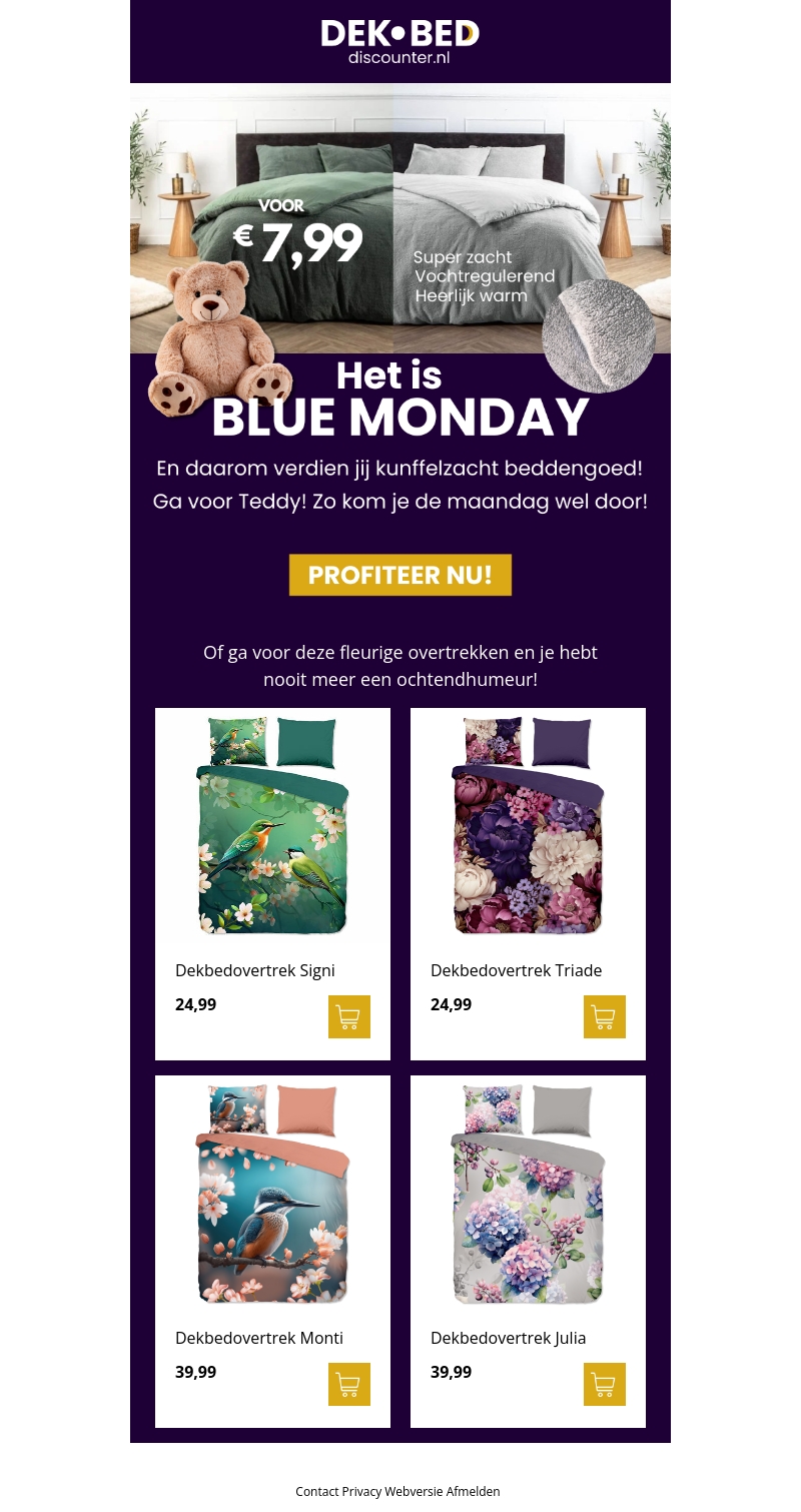 Geen Blue Monday meer met dit knuffelzachte beddengoed vanaf €7,99! Haal de gezellige teddy in huis en geniet van de kleurrijke dekbedovertrekken die je ochtendhumeur zullen verjagen. Profiteer nu van onze speciale aanbiedingen en maak je slaapkamer een knusse toevluchtsoord.