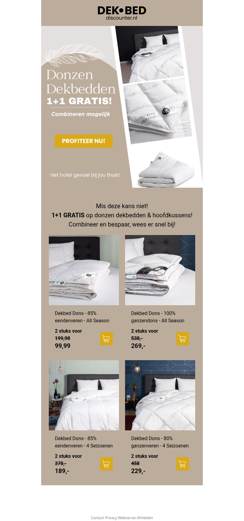 Mis deze unieke kans niet! Ontvang een gratis donzen dekbed bij aankoop van een andere. Combineer met hoofdkussens voor extra comfort. Deze aanbieding biedt een hotelgevoel bij jou thuis. Wees er snel bij, want de voorraad is beperkt. Combineer verschillende soorten dons naar keuze.