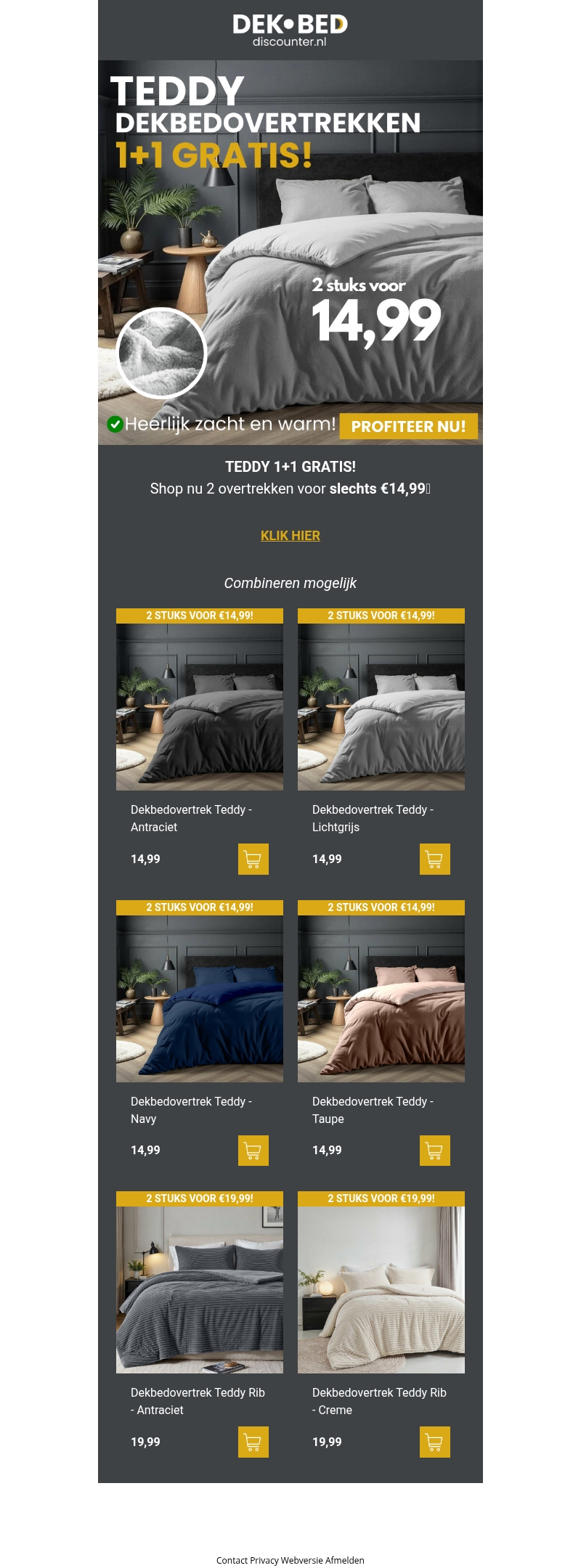 Mis deze kans niet om heerlijk zachte TEDDY dekbedovertrekken aan te schaffen met een 1+1 gratis aanbieding. Koop nu twee dekbedovertrekken voor slechts €14,99! Verkrijgbaar in verschillende kleuren, perfect voor elke slaapkamerstijl. Combineer en bespaar meer met onze exclusieve promotie. Profiteer nu en ervaar ultiem comfort in je slaapkamer.